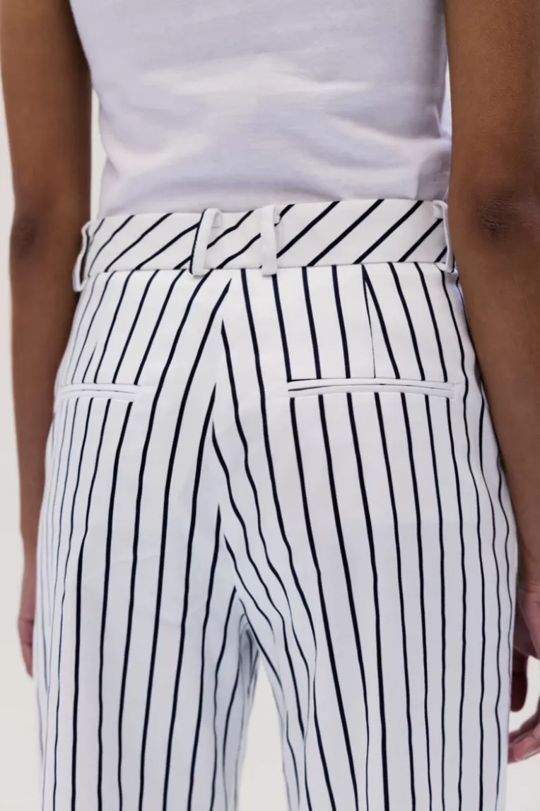 pantalon à pinces, oversize, coupe masculin. À porter sans ceinture taille basse ou taille haute avec une ceinture. Coloris blanc rayé bleu. 100% coton Fabriqué en France.